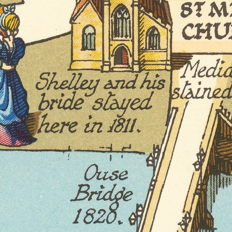 Finely executed pictorial map of the City of York, published in York by by Ben Johnson & Co.
