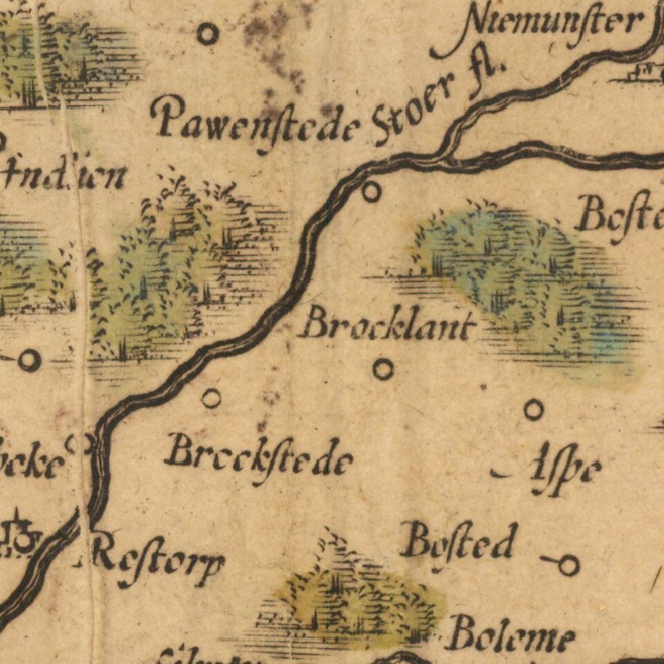 Detailed map of Holstein, extending south to include Hamburg and Lubeck.
