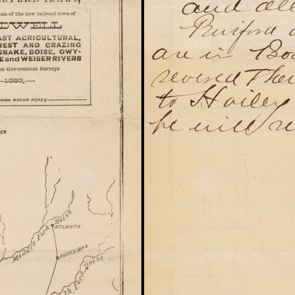 Fascinating early Idaho letter sheet, promoting the newly formed town of Caldwell, Idaho, published by its promoter, the Idaho & Oregon Land Improvement Company.