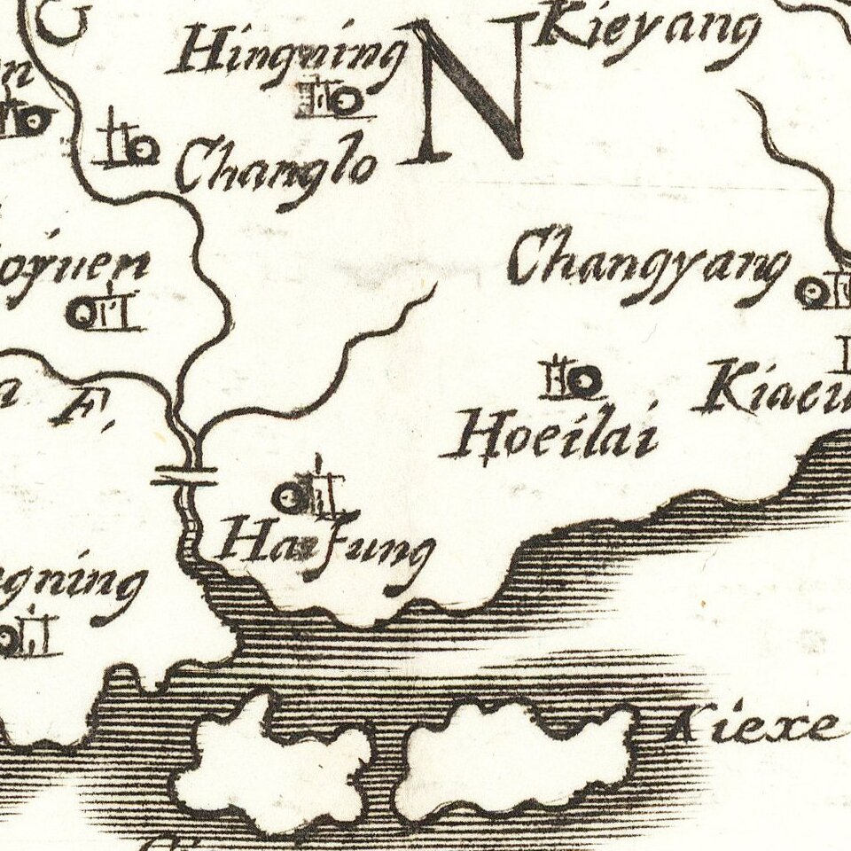 Fine example of Coronelli's map of the provinces of Guandong, Guangxi Fujian and Jiangxi, including Hainan, Hong Kong, Guangzhou, and Taiwan from Coronelli's rare Corso Geografico Universale, one of the most decorative and ornate of the 17th Century.