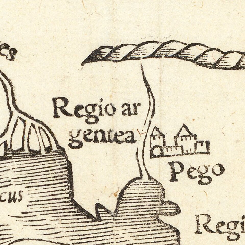 Although largely based on Ptolemy's work, the map incorporates some of the more recent Portuguese discoveries. The outlines of the Indian subcontinent, between the Indus and the Ganges rivers are now in a more recognizable form, with "Zaylon" (Sri Lanka) correctly shown as an island. The Portuguese outpost of Goa and Calicut, the first place where Vasco da Gama landed in 1497, are depicted. Further to the east "Taprobana" is also designated as "Sumatra.". The Portuguese trading port of "Malaqua" is shown. Java is depicted as two separate islands. "Moloca," center of the spice island trade and the object of considerable conflict between Spain and Portugal, is shown. The resolution of the dispute was the official purpose of Magellan's epic circumnavigation. The treatment of "Cathay" (China) is consistent with the writings of Marco Polo and other Venetian travellers.