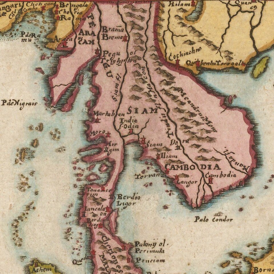 Decorative map of Southeast Asia, China, Philippines and India, which was included in Cluverius' Introductionis in Universam Geographiam, tam Veterem quam Novam.