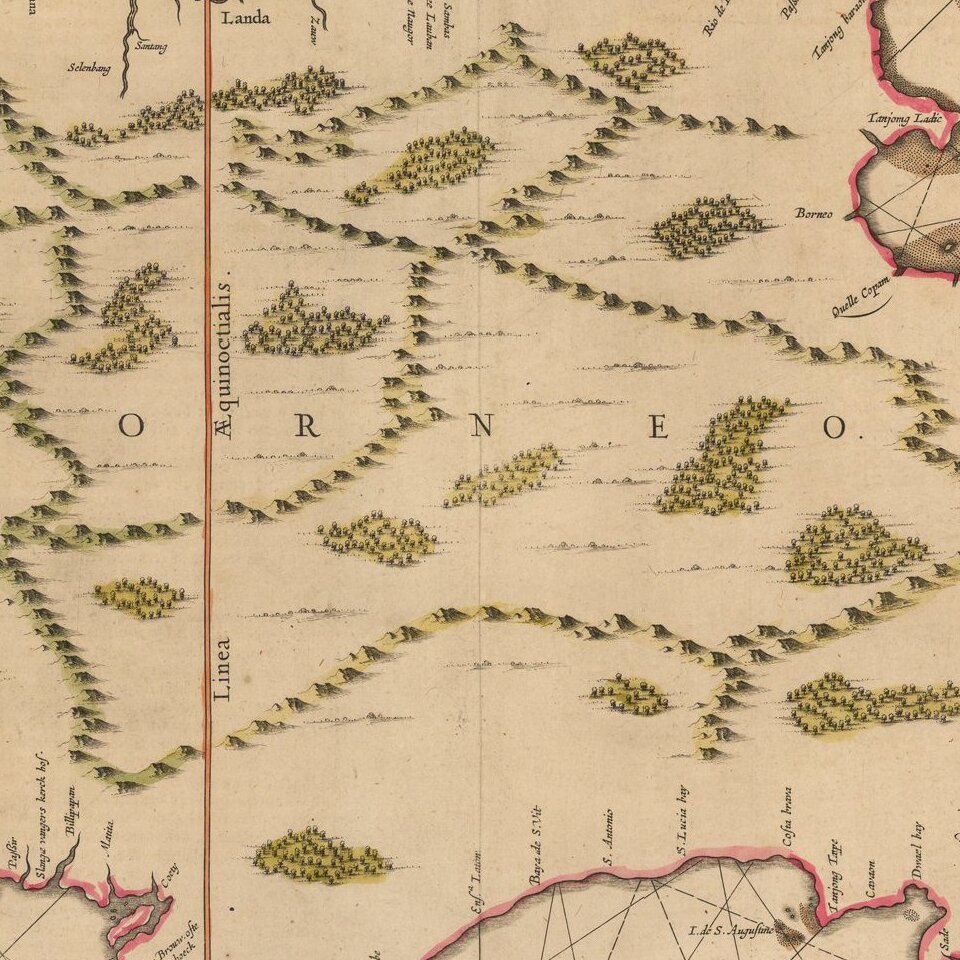 Nice example of Jansson's chart of Borneo, the earliest large format map to focus on the Island.