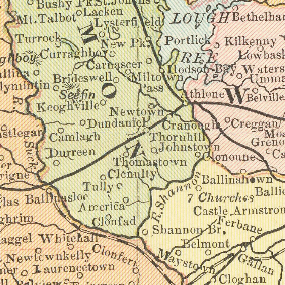Detailed map of Ireland, colored by Counties, from Cram's Standard American Railway Atlas.