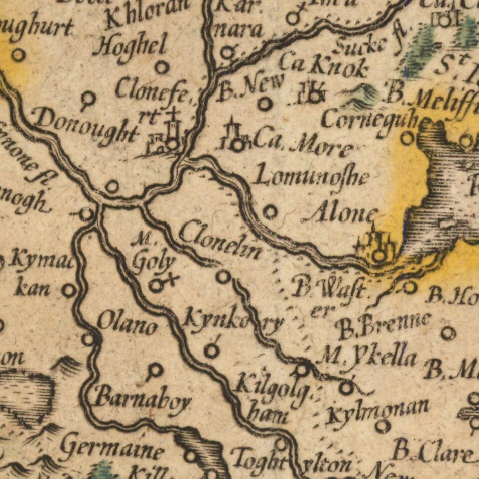 Old color example of Mercator's map of Ireland, which first appeared in the 1595 edition of Mercator's Atlas.