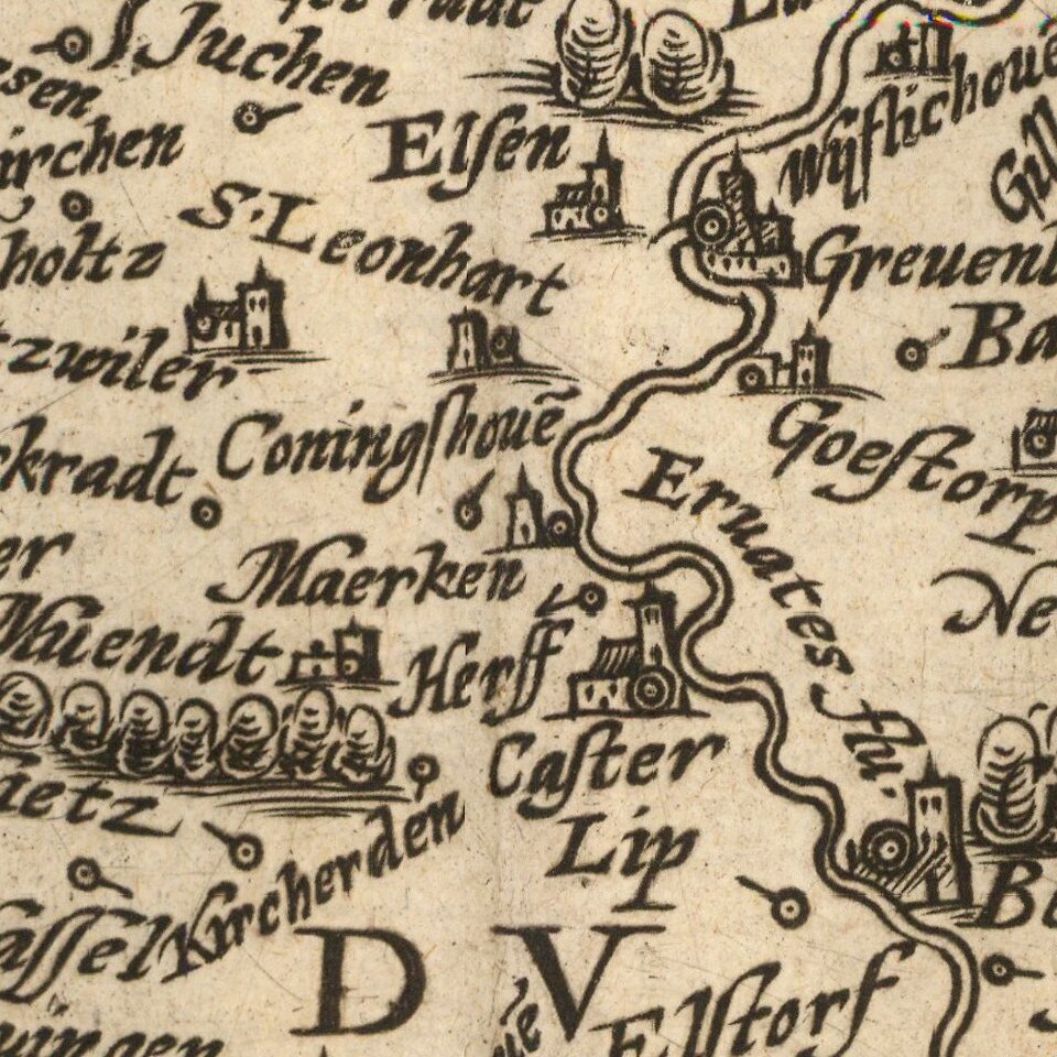 The present map was produced by two of the primary Cologne School mapmakers, Johann Bussemacher and Matthias Quad. The Cologne School of cartography, was perhaps the only group of mapmakers competing with the Low Countries-based map publishing houses at the end of the 16th century (De Jode and Ortelius). For more on the Cologne School, see: Meurer, Atlantes Colonienses. Die Kolner Schule der Atlas Kartographie 1570-1610.