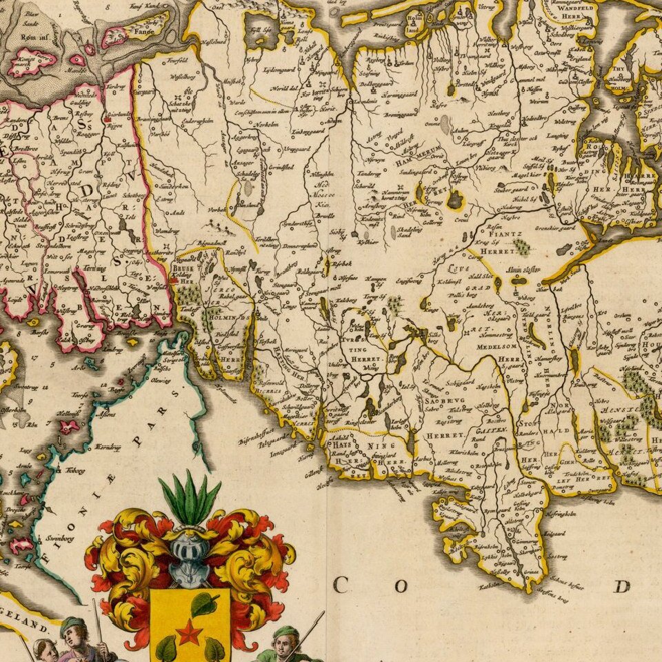 Fine example of Blaeu's map of Jutland, which was issued only in the Atlas Maior.