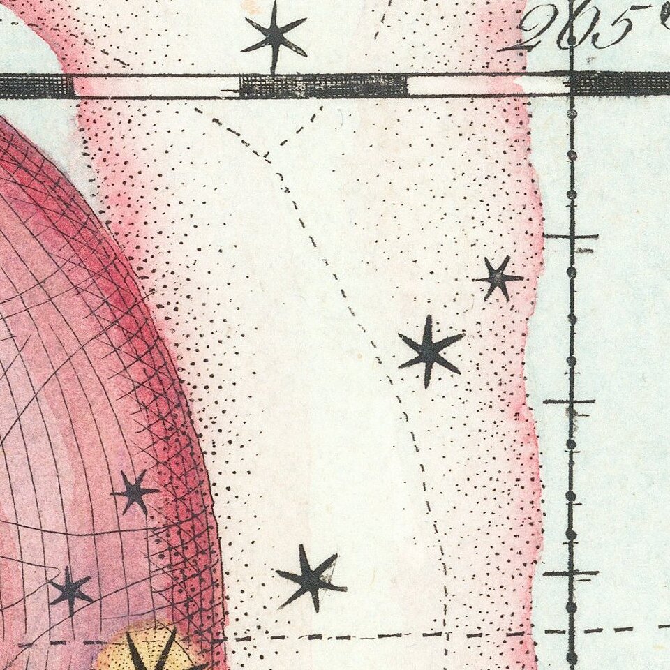 A magnificent hand-colored engraved celestial plate from "the most elaborate atlas of stars and constellations published to date and perhaps the last great star atlas." - David Rumsey