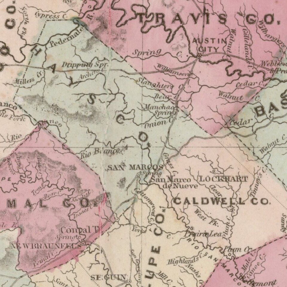 Rare late edition of Jacob De Cordova's important map of Texas and the first edition to be revised to identify the place of publication as Austin.