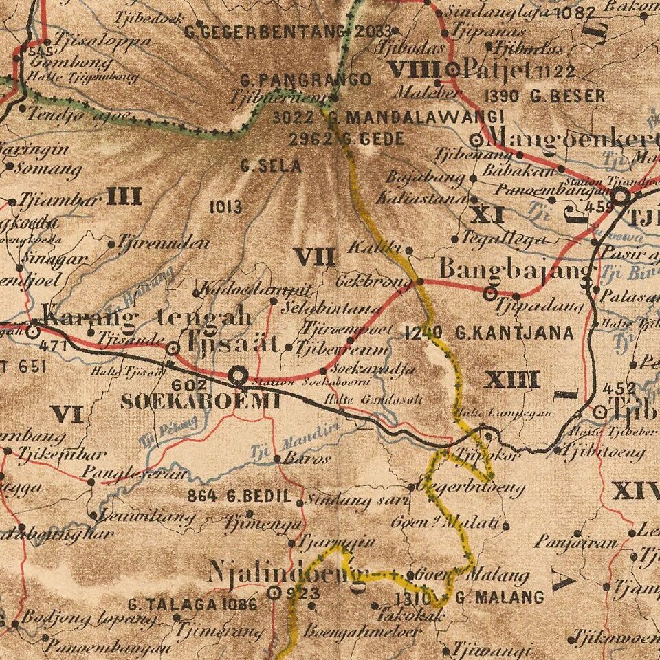Attractively color-printed map of Western Java, with a large inset of the Harbor of Batavia and environs, from Stemfoort's Atlas der Nederlandsche bezittingen in Oost-Indië naar de nieuwste bronnen samengesteld en aan de regering opgedragen.