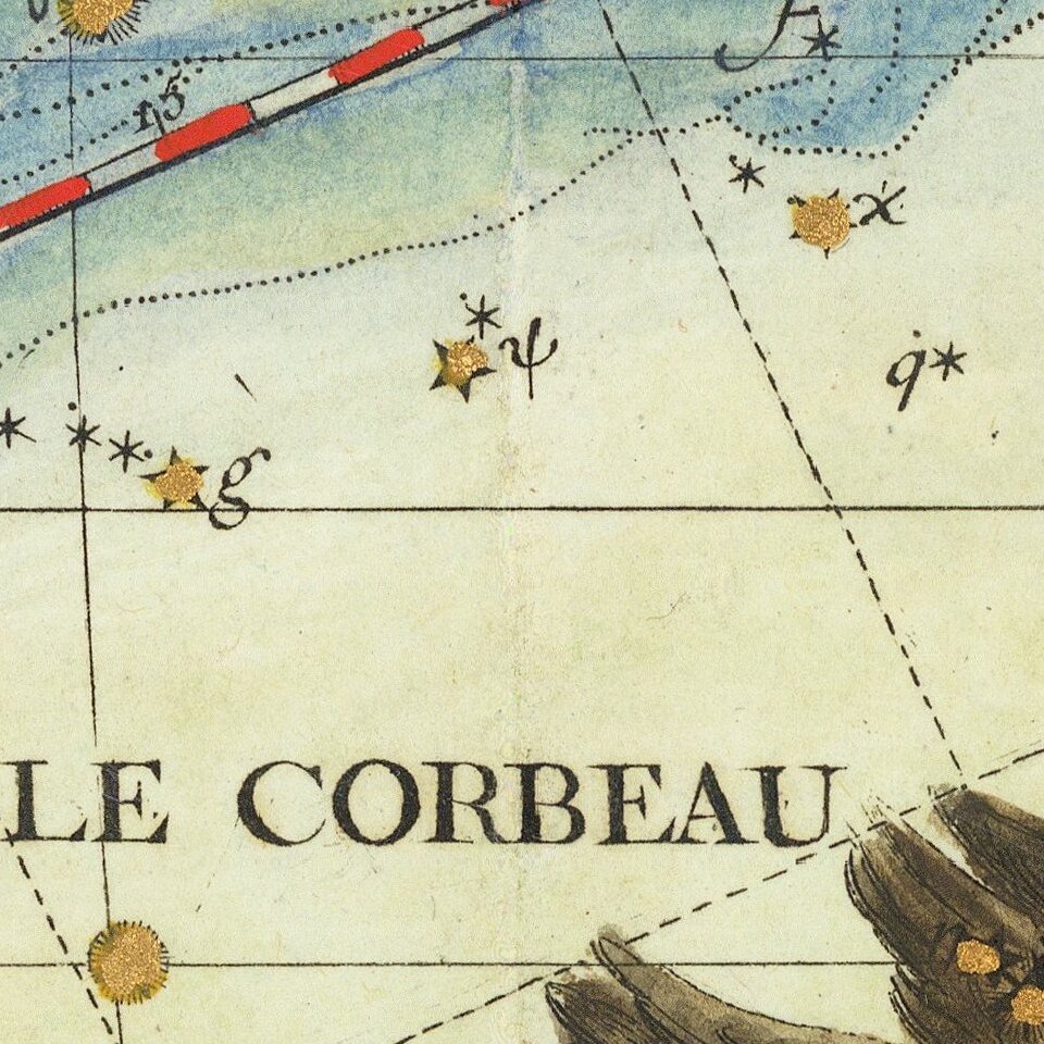 Detailed star chart of the constellations Virgo, Hydra, Crater, and neighboring constellations, from Fortin's Atlas Celeste de Flamsteed . . , published in Paris.