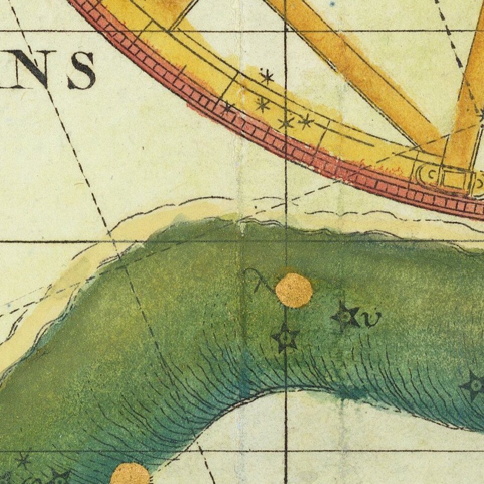 Detailed star chart of the constellations Hydra and Sextans and neighboring constellations, from Fortin's Atlas Celeste de Flamsteed . . , published in Paris.