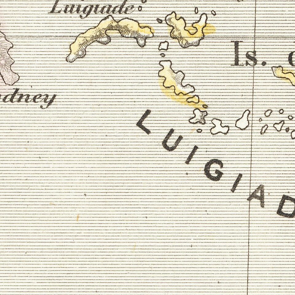 Rare map of New Guinea, the Solomon Islands, New Caledonia, the New Hebrides and the Gulf of Carpentaria, from Marmocchi's rare Geografia Commerciale.
