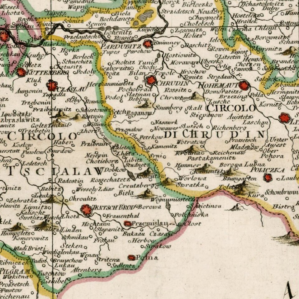 Rare and highly decorative regional map of the Eastern part of Bohemia.