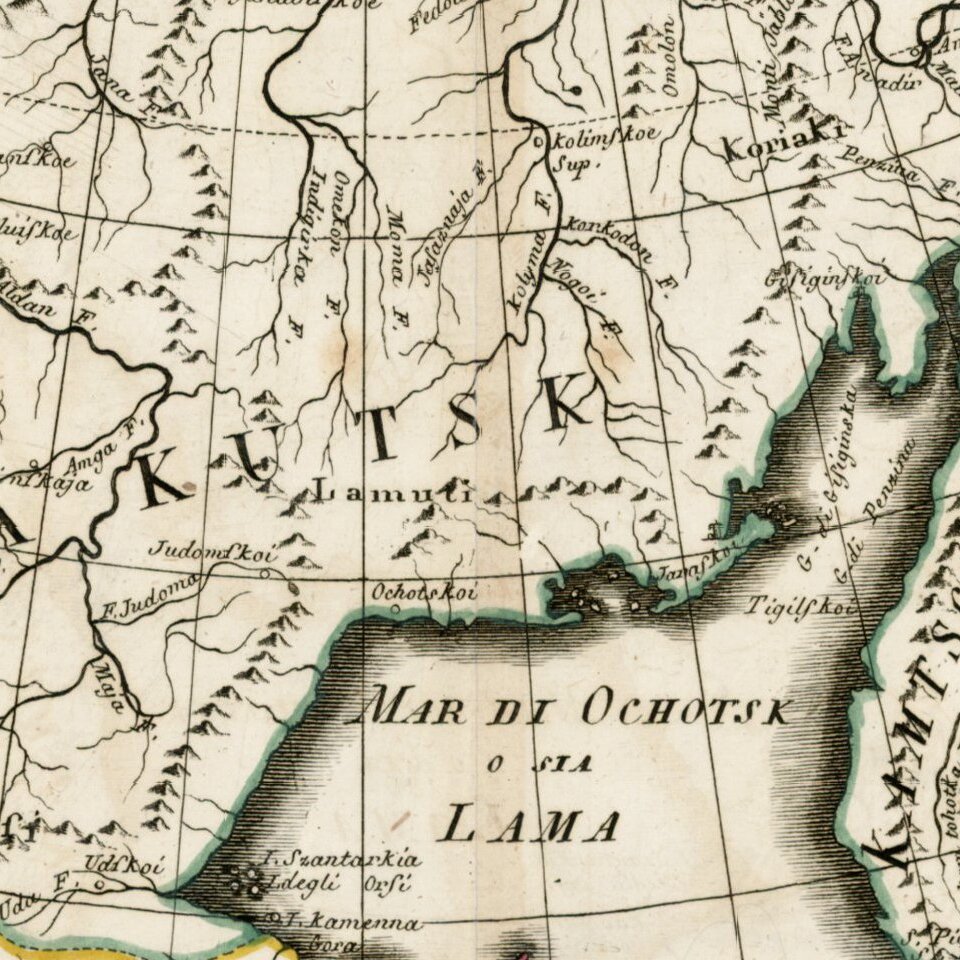 Decorative map of Siberia and Alaska from this scarce and highly decorative 18th Century atlas.