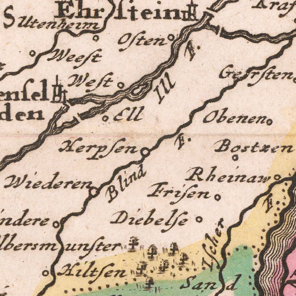 Antique Map of the Upper Rhine Region, Alsace, etc.