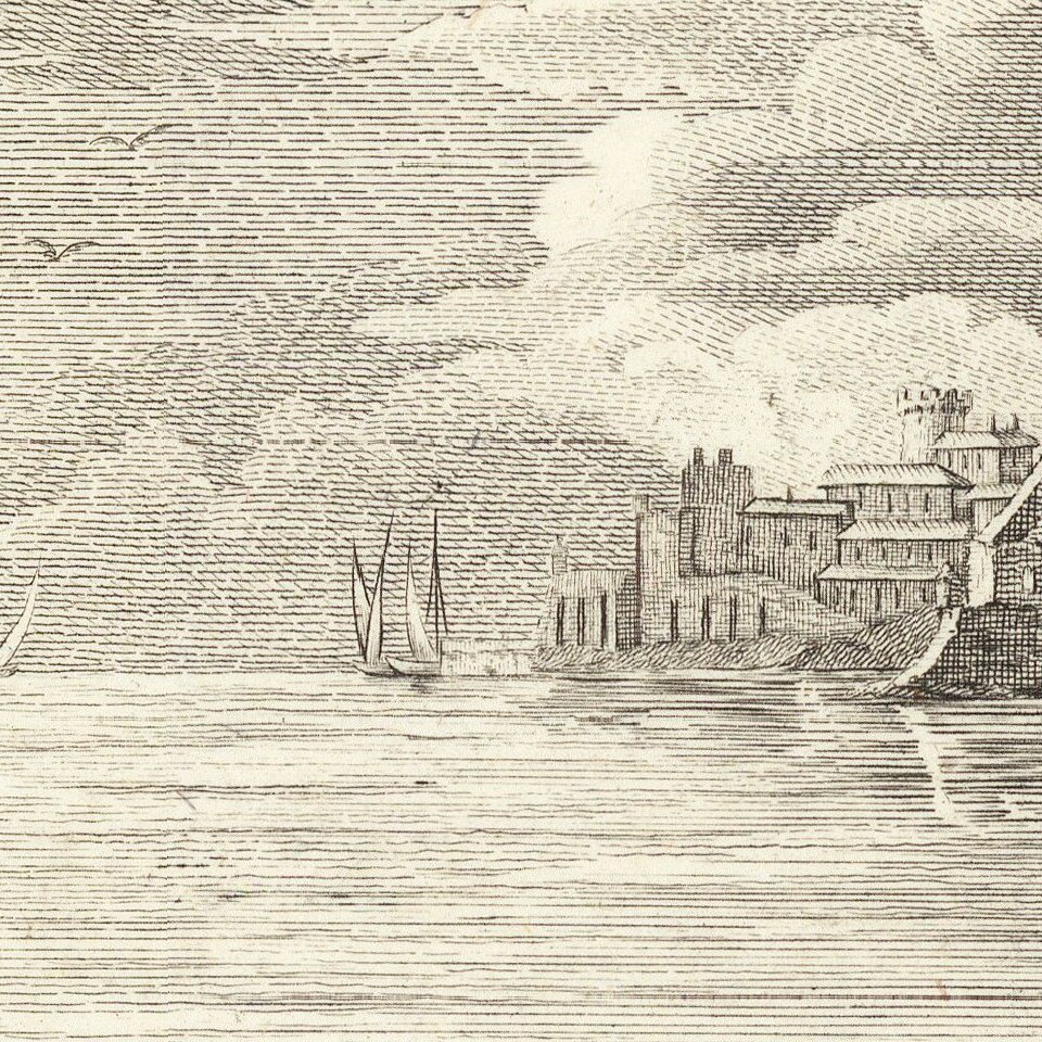 Rare view of the entrance to the port of Charleston, South Carolina, engraved by Claude Joseph Vernet in London.