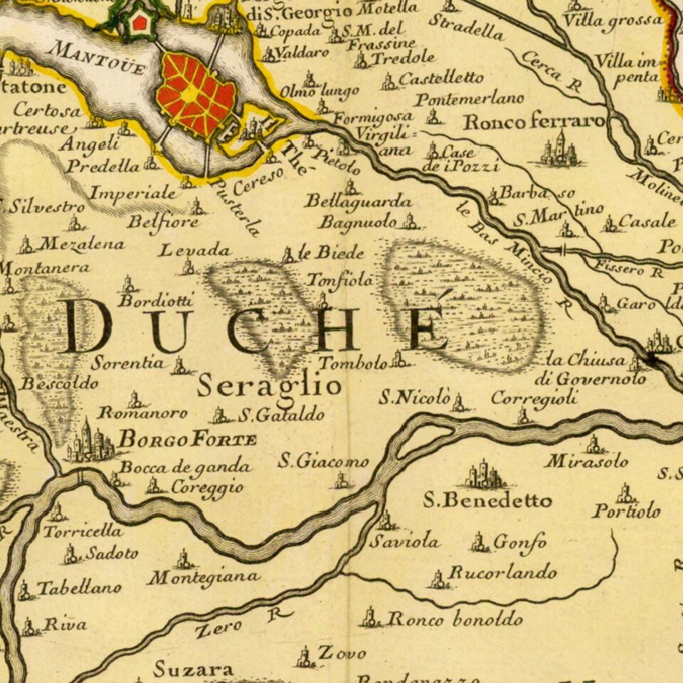 Extremely rare separately issued map of the Duche of Mantua, published in Paris by Liebaux.
