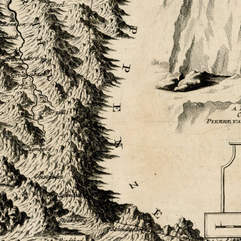 Pieter van der Aa (1659-1733) was a Dutch mapmaker and publisher who printed pirated editions of foreign bestsellers and illustrated books, but is best known for his voluminous output of maps and atlases. Van der Aa was born to a German stonecutter from Holstein. Interestingly, all three van der Aa sons came to be involved in the printing business. Hildebrand was a copper engraver and Boudewyn was a printer.