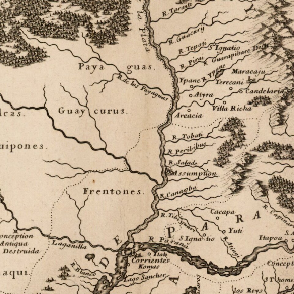 Rare map of the region around the Rio de la Plata, which is shown extending north to Lago de los Xarayes.