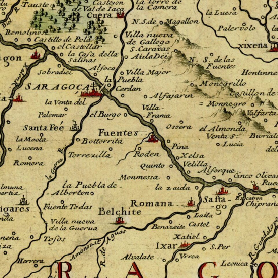 The map is centered on Zaragoza and shows the Kingdom in fine detail.