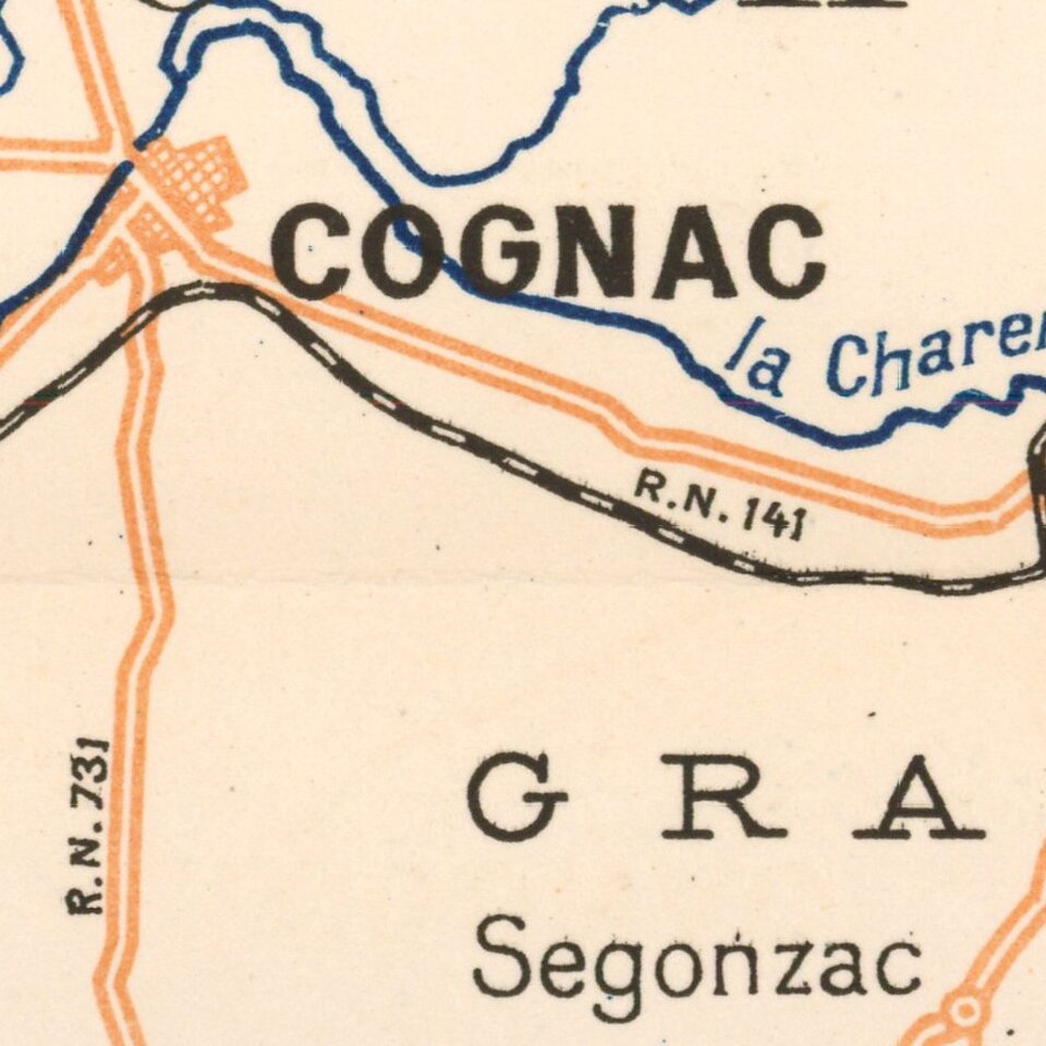 Nice example of one of the Cognac regional maps from Louis Larmat's important atlas of the French Wine Country Atlas De La France Vinicole -- Les Vins de Bordeaux.