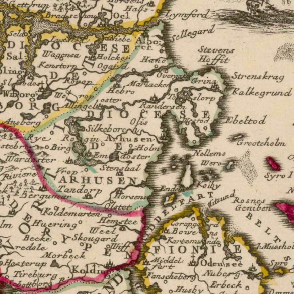 Fine example of Chiquet's map of Denmark, from his Le Nouveau et Curieux…