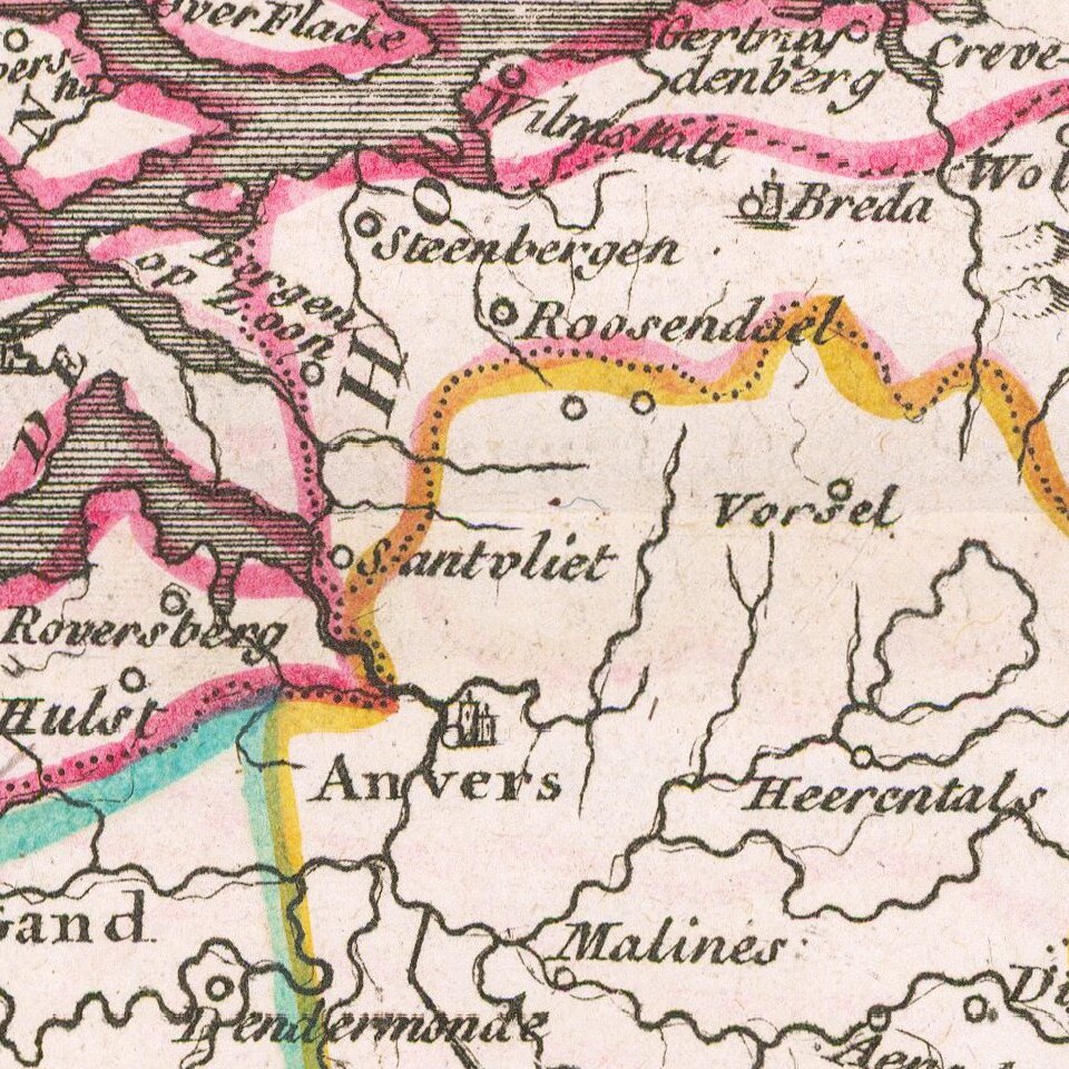 Detailed map of the Low Countries, from Le Rouge's scarce Atlas Nouveau Portatif, published in Paris in 1748.