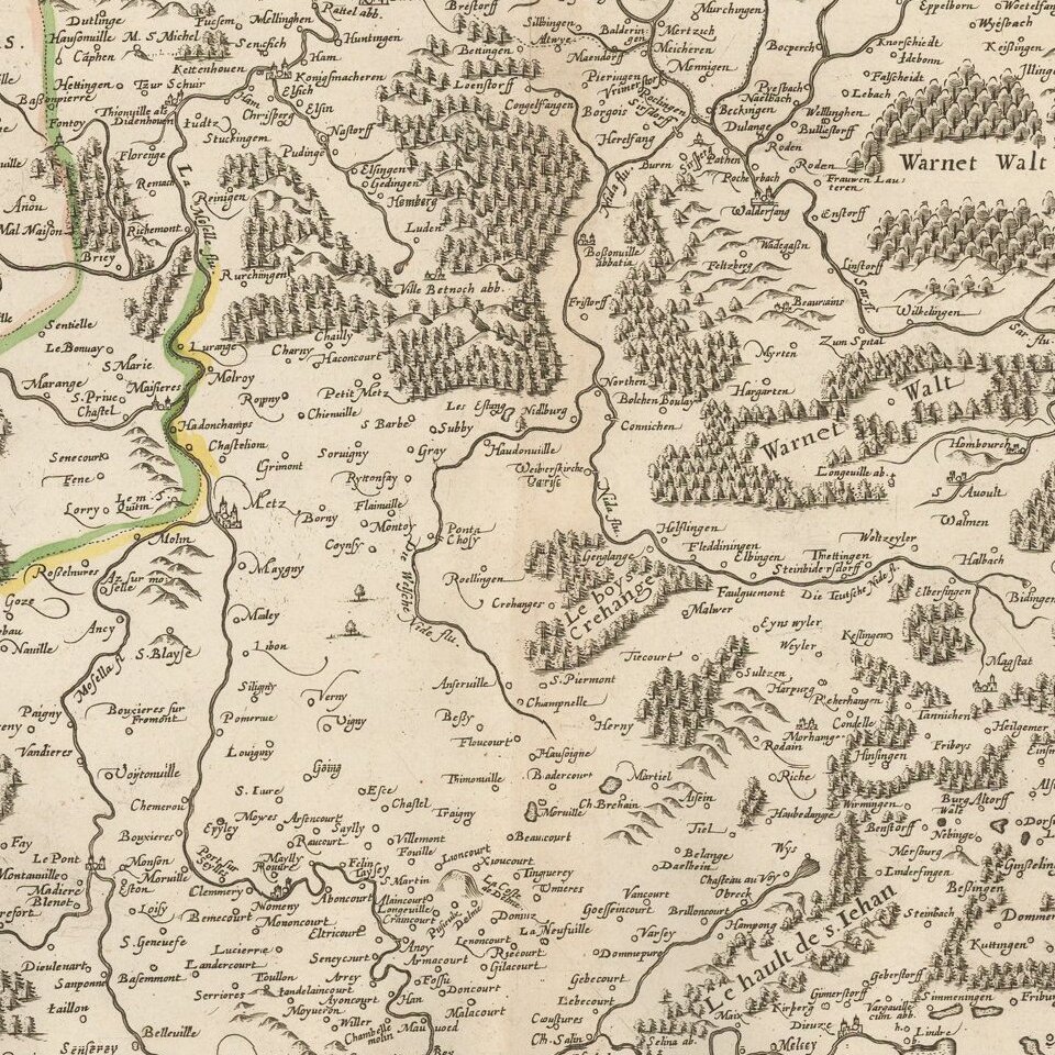 Rare late edition of Francois Bougereau's map of Lorraine region, first published in 1594.