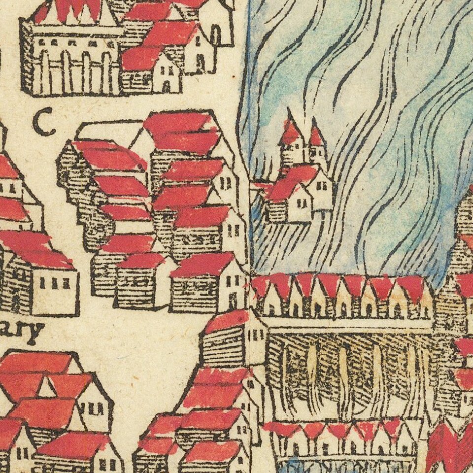 Sebastian Münster (1488-1552) was a cosmographer and professor of Hebrew who taught at Tübingen, Heidelberg, and Basel. He settled in the latter in 1529 and died there, of plague, in 1552. Münster made himself the center of a large network of scholars from whom he obtained geographic descriptions, maps, and directions.