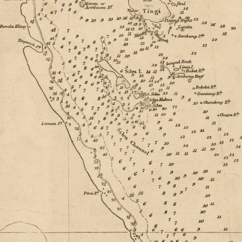 This fine chart details the eastern parts of what is now the mainland Malayisian State of Johor, from the site of Jahor Bahru eastwards, along with the eastern part of the island of Singapore. It was primarily intended to guide ships into the eastern approaches to Singapore Harbour, one of the busiest ports in the East, and the main center of the British Empire in southeast Asia. At the time, Johor was a nominally independent sultanate under British protection. The Strait of Johor and the waters off of Changi, Singapore feature detailed bathymetric soundings, while all of the coastlines throughout are labelled with copious navigational information. The island of Pulo Tioman, known today for its scuba diving, is located in the upper-right of the map.