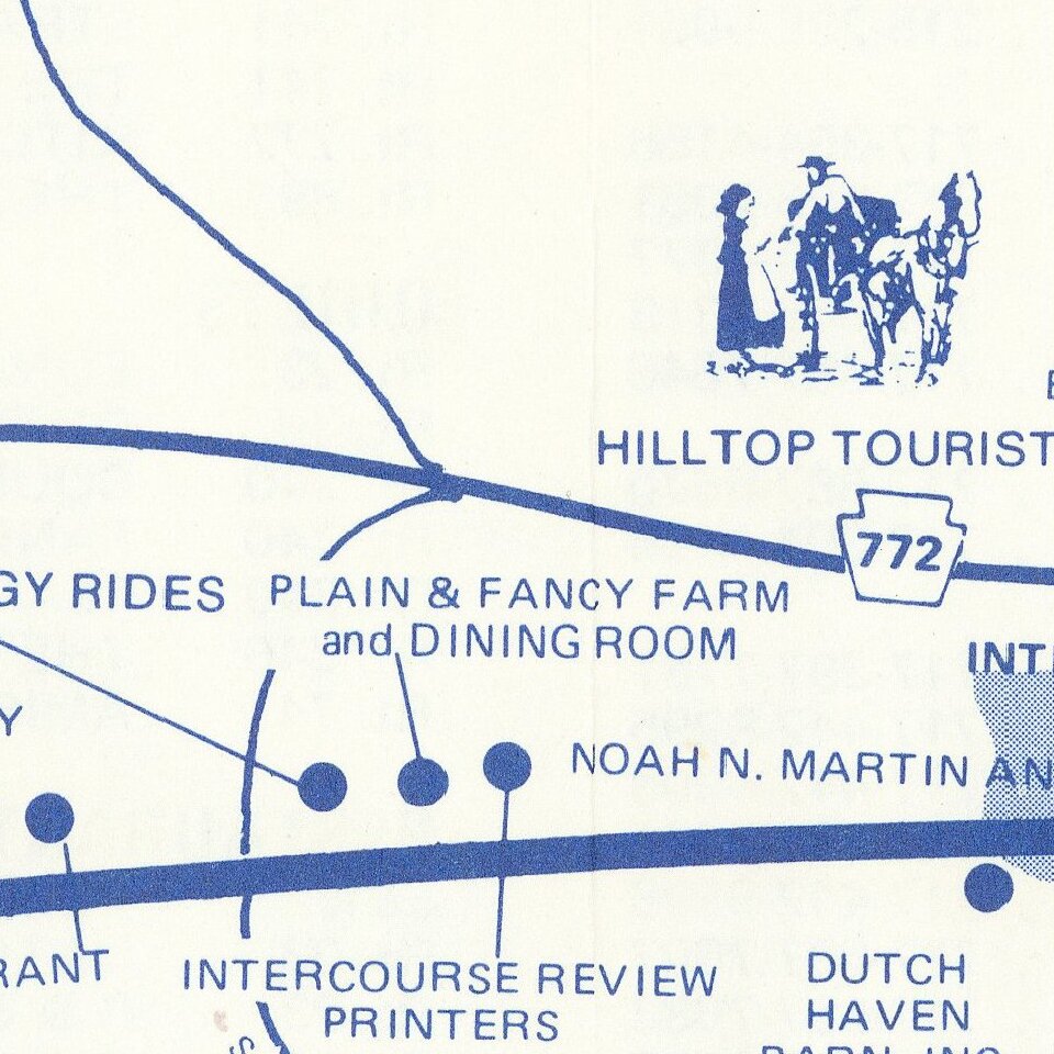 Interesting schematic style road map of the Amish Country, published to promote local businesses by the 340-23 Club.