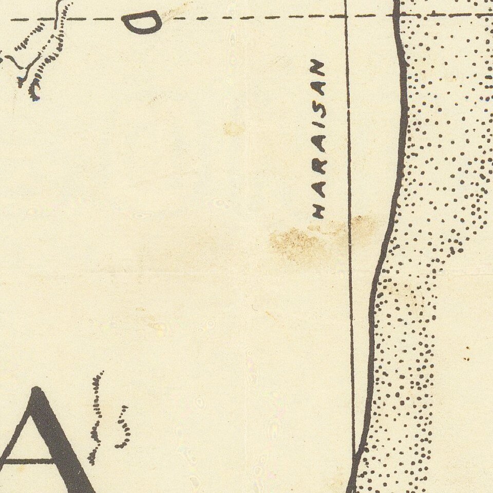 One of the earliest printed maps of Saudi Arabia to include the name Arabian American Oil Company (Aramco)