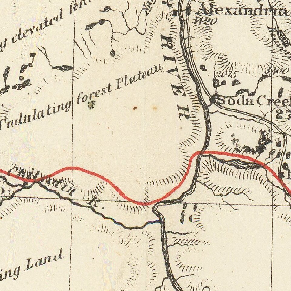 Twice previously we have had examples of this map in which the potential route of the CPR is printed in black, like the rest of the map. In that variant, there are far fewer potential routes illustrated than in the present map.
