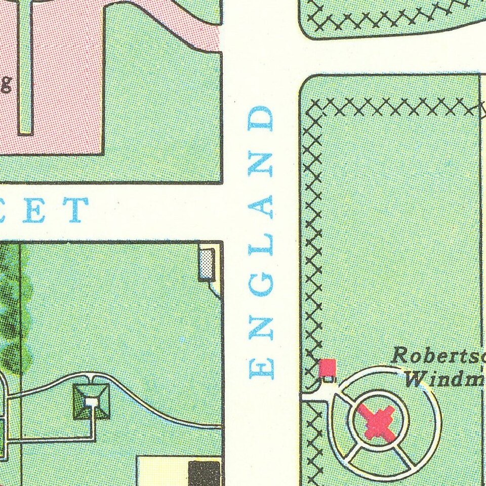 Lively pictorial map of Williamsburg, illustrating the town following its restoration "through the generosity of . . . John D. Rockefeller, Jr. and members of his family."