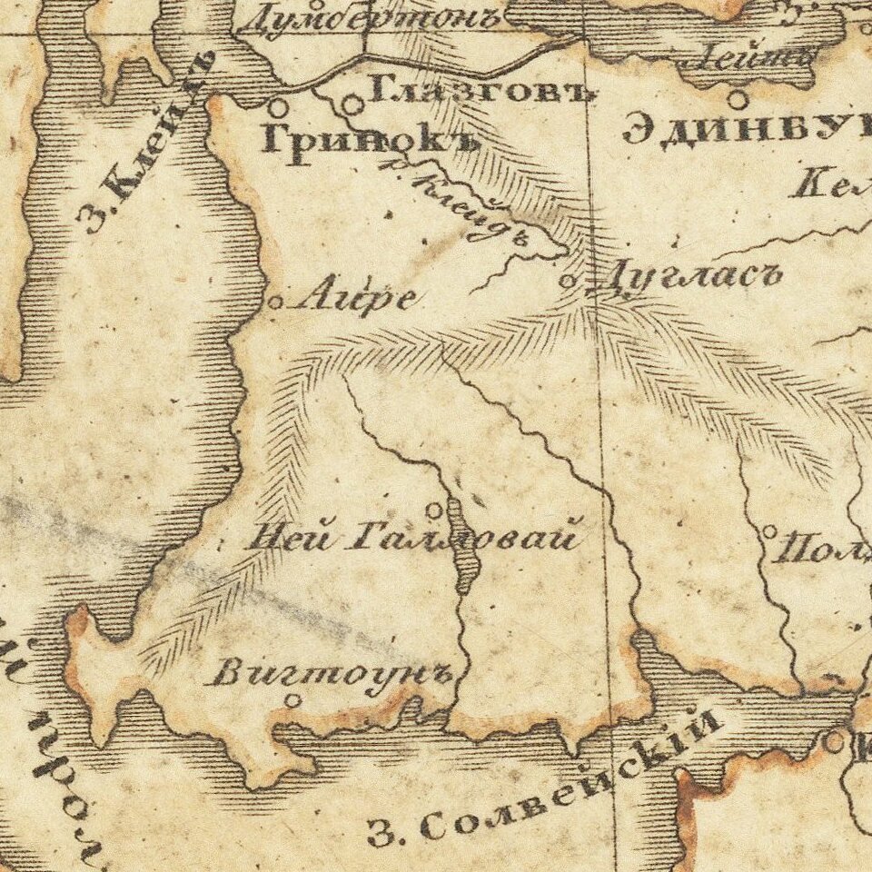 Detailed and very rare Russian-language map of England, Wales, Scotland, and Ireland, published in Saint Petersburg in 1836.