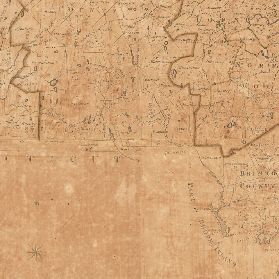 And be it further Resolved, that on each of said plans… the situation of houses for public worship, Court-Houses… shall be inserted…. And it is further Resolved, That there be inserted… the breadth of rivers, the number and reputed magnitude of ponds, the falls of water, mountains, manufactories, mills, mines and minerals, and of what sort, iron-works and furnaces… (Ibid.)By 1796 surveys had been received from most towns, many of which survive to this date in the Massachusetts State Archives. In 1797, Osgood Carleton and Boston printer-publisher-engraver John Norman, submitted a winning proposal to compile the data, produce engravings, and publish the result. In return for providing 400 copies of each to the State, they would receive a fourteen year copyright to the map.