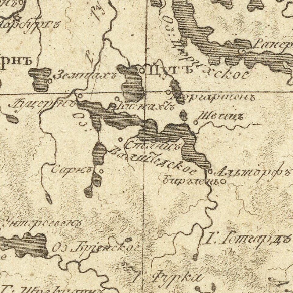 Detailed and very rare Russian-language map of Switzerland, published in Saint Petersburg in 1836.