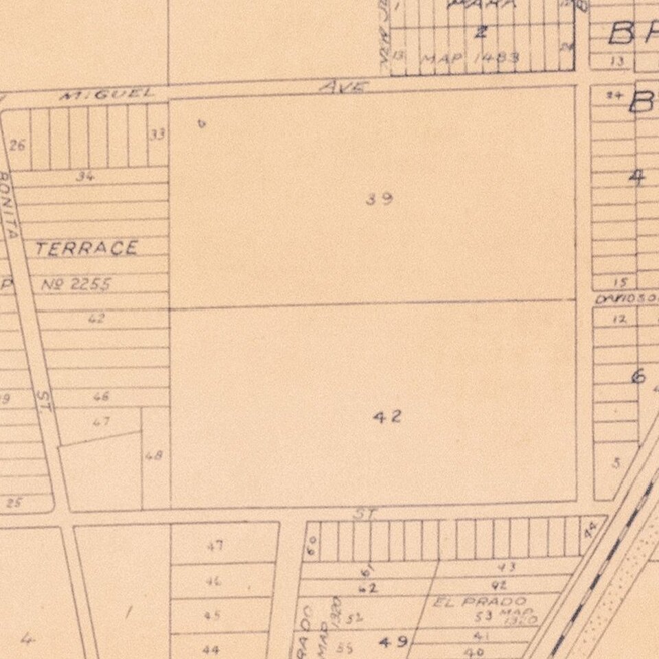 There is plot level detail in the areas that had been subdivided when the map was made, though much of the area was still undeveloped when this map was made.