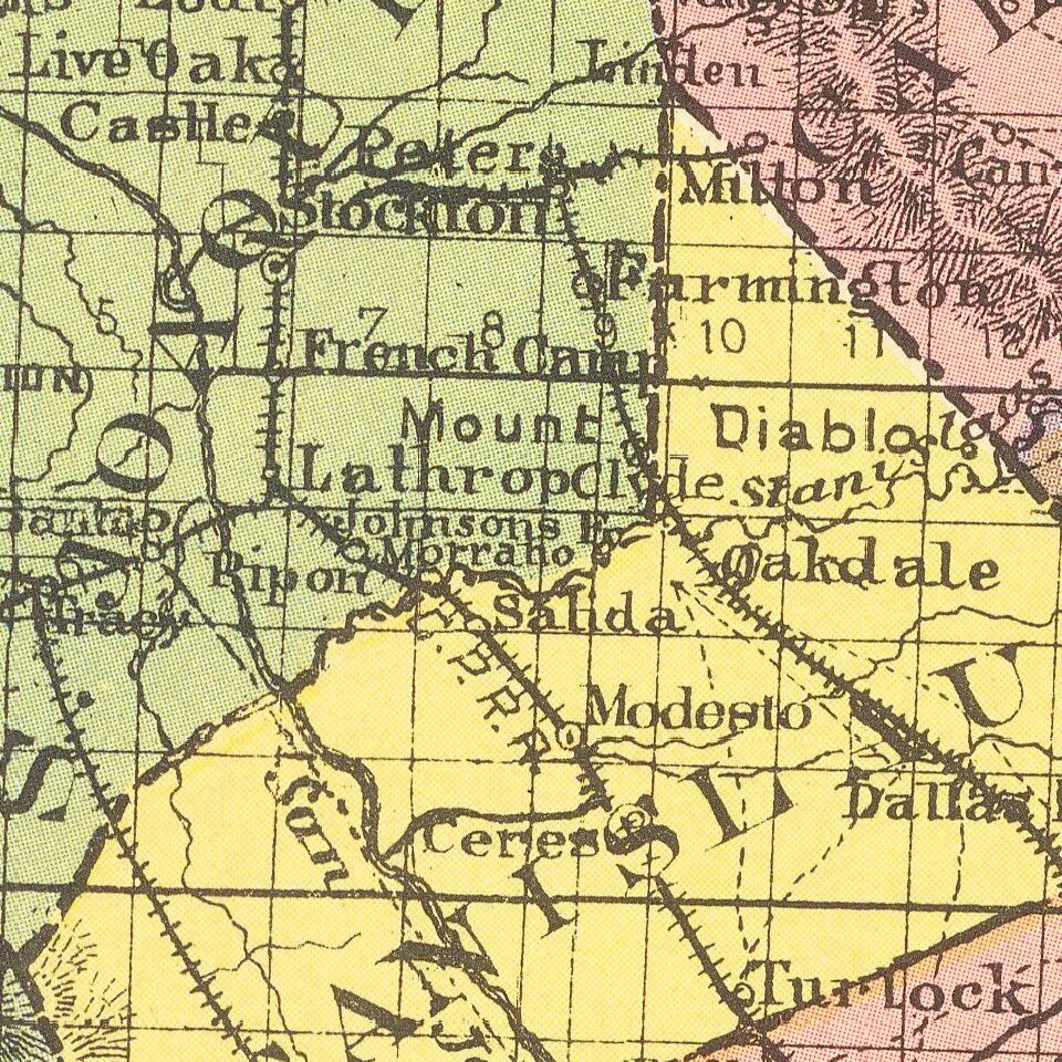 Scarce map of California, colored by counties. which appeared in Thompson's Atlas of Tulare County.