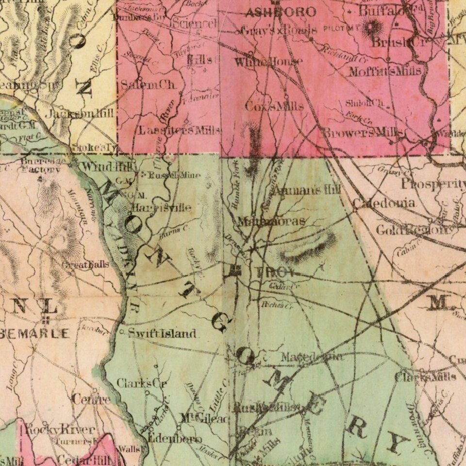 One of the largest and most detailed maps of North Carolina published in the middle of the 19th Century.