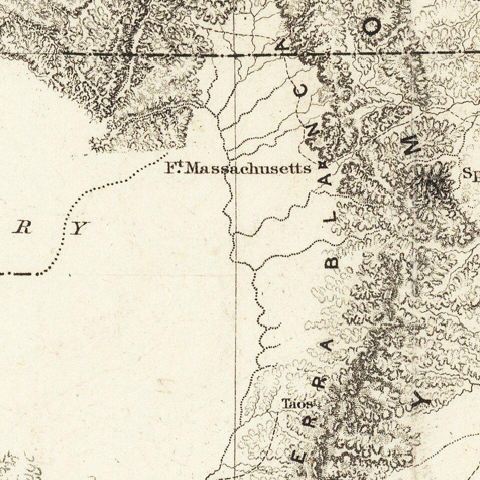 Massive Nebraska and Kansas Territories dominate the Plains, immediately prior to the discovery of Gold in Colorado in 1858. The route of the Yellowstone River is still relatively unexplored and the region between the Missouri and Wind Rivers largely unknown, other than the Black Hills. The region between the Cascades and the Bitter Root Mtns are similarly unknown. The Upper Colorado includes nice topographical detail, as do the Wasatch and Elk Mtn Ranges. Lake Tahoe is shown, but the Tetons and Yellowstone Lake have not been discovered.