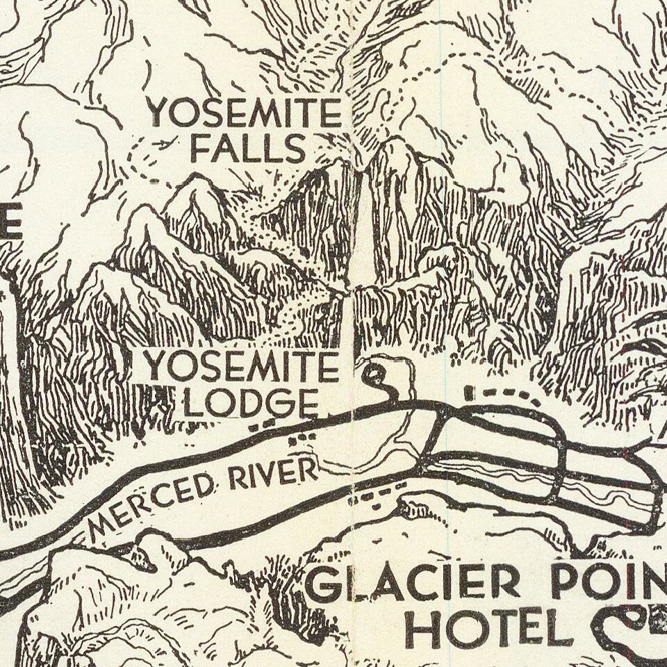 Detailed topographical / pictorial map of Yosemite and Vicinity, published as a vistor's guide promotional map.