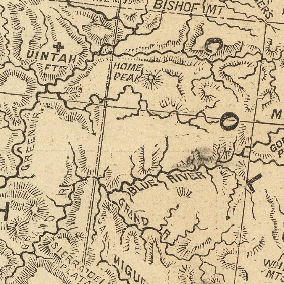 The map also illustrates the Union Pacific and Southern Pacific railroad completed and connected through Utah, two years prior to its actual completion, and running south of the Great Salt Lake, rather than its true course.