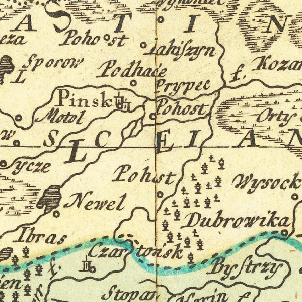 Poland extends from Glogau and Breslau in the west, to Braclaviensis in the south along the Dniestr River, east to the Dniepr River and Mscislaw and north to include parts of Lithuania, although Curland separates Poland from the Lithuanian Sea.