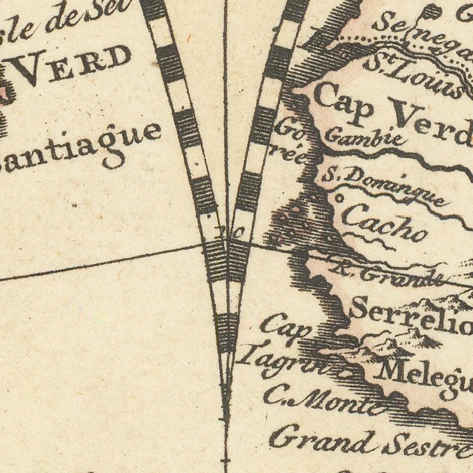De L'Isle also played a prominent part in the recalculation of latitude and longitude, based on the most recent celestial observations. His major contribution was in collating and incorporating this latitudinal and longitudinal information in his maps, setting a new standard of accuracy, quickly followed by many of his contemporaries. Guillaume De L'Isle's work was widely copied by other mapmakers of the period, including Chatelain, Covens & Mortier, and Albrizzi.