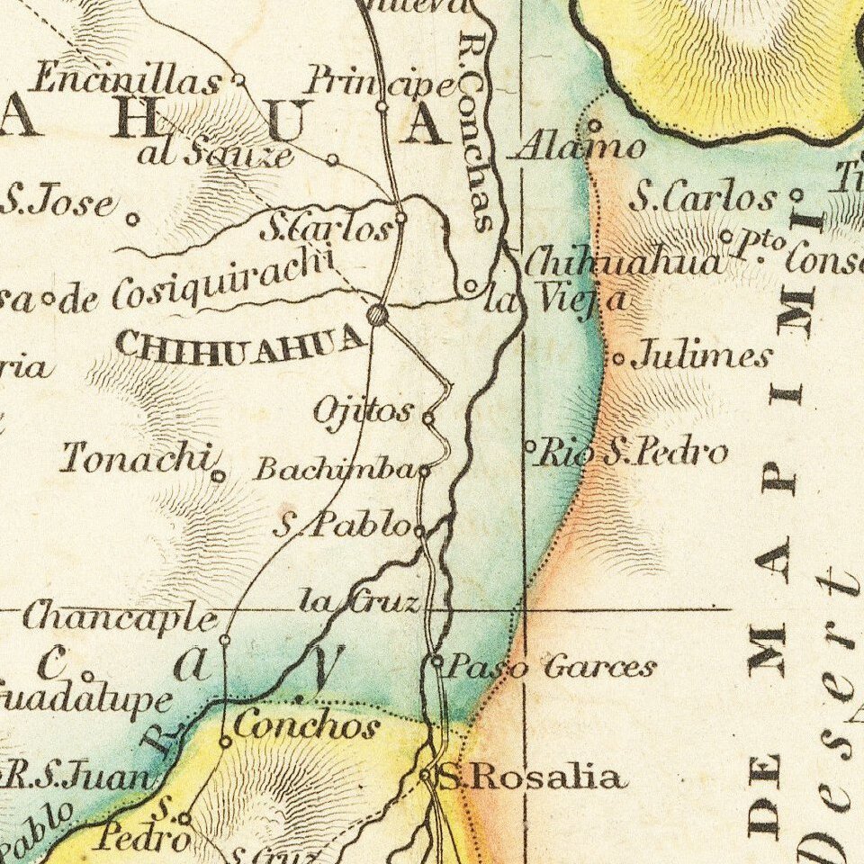 Includes excellent cartographic detail in Texas & Upper California. Includes a number of early roads in Texas. Felipe de Austin is shown, along with many other settlements. At least 10 Indian Villages appear. De Witt's colony also appears on the Guadalupe River. Cabello and Gonsalves are also named. At least a dozen early place names appear, with good detail along the coast, Galveston Bay, Matagorda Bay, etc.