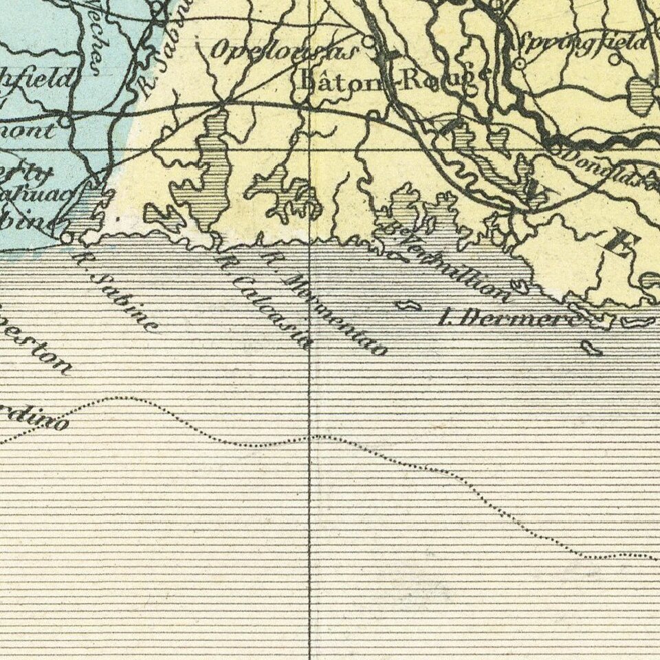 Nebraska Territory extends from the Rockies to the Missouri. Texas is oddly configured and the early French, German and Mainzer Colonies in Texas are shown.