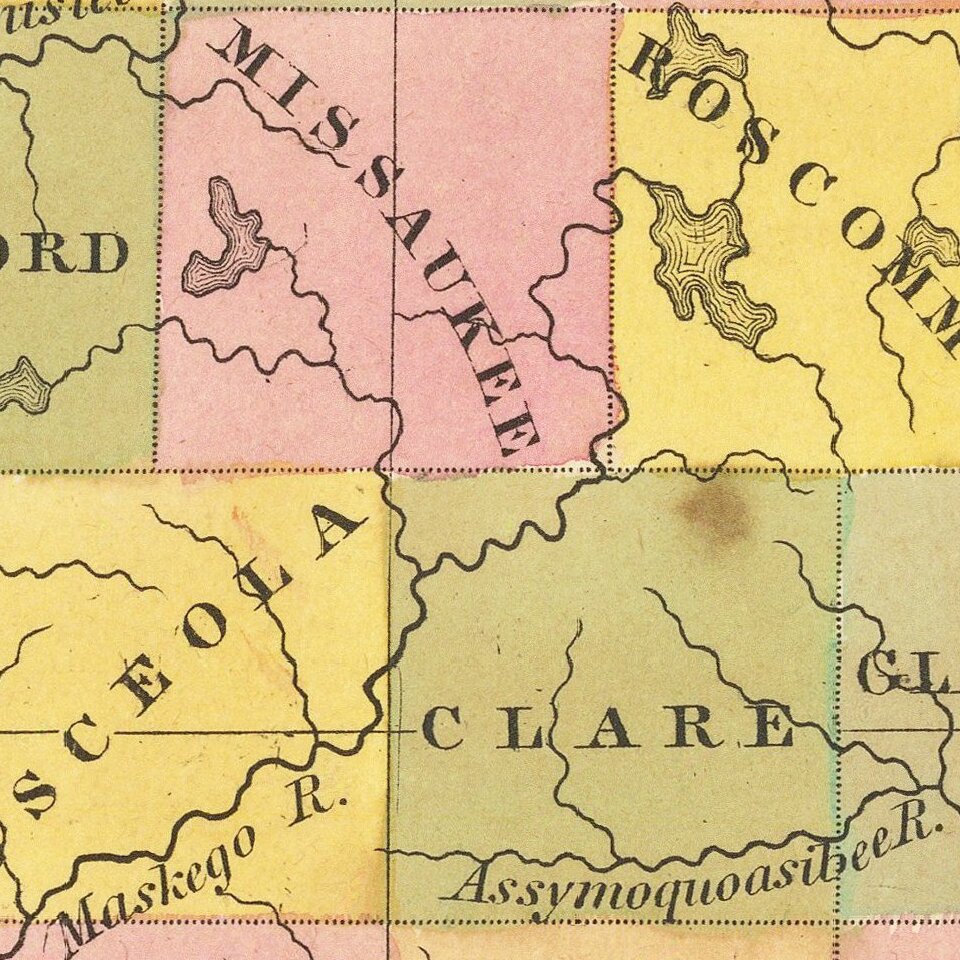 Scarce early example of Tanner's map of Michigan Territory, with interesting early/primitive counties, Indian Lands, etc.