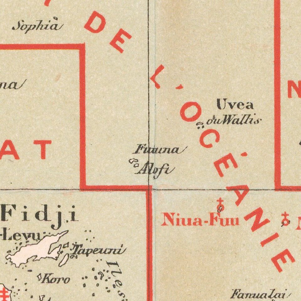 Rare map showing the Catholic Missions on New Zealand, the Hawaiian Islands, Tahiti, Samoa, Tonga, New Caledonia, New Hebrides, Fijian Islands, the Marquesas, and a number of other islands, with a general map in the center, published as a Supplement to the Journal Les Missions Catholiques in Paris.